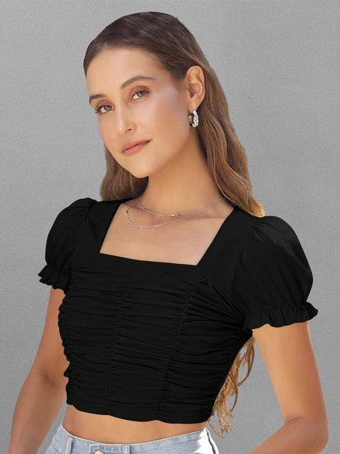 Be the first to review “LONDON BELLY Square Neck Puff Sleeves Crop Top”