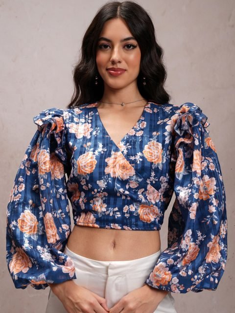 Be the first to review “Tokyo Talkies Navy Blue Floral Printed Wrap Crop Top”